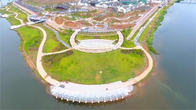 長沙圩鎮(zhèn)碧道鋪設(shè)了瀝青并劃分跑道和自行車道,“顏值”再獲提升。(林翔?攝)位于梅江河圩鎮(zhèn)段碧道沿線的紅色休閑廣場效果....